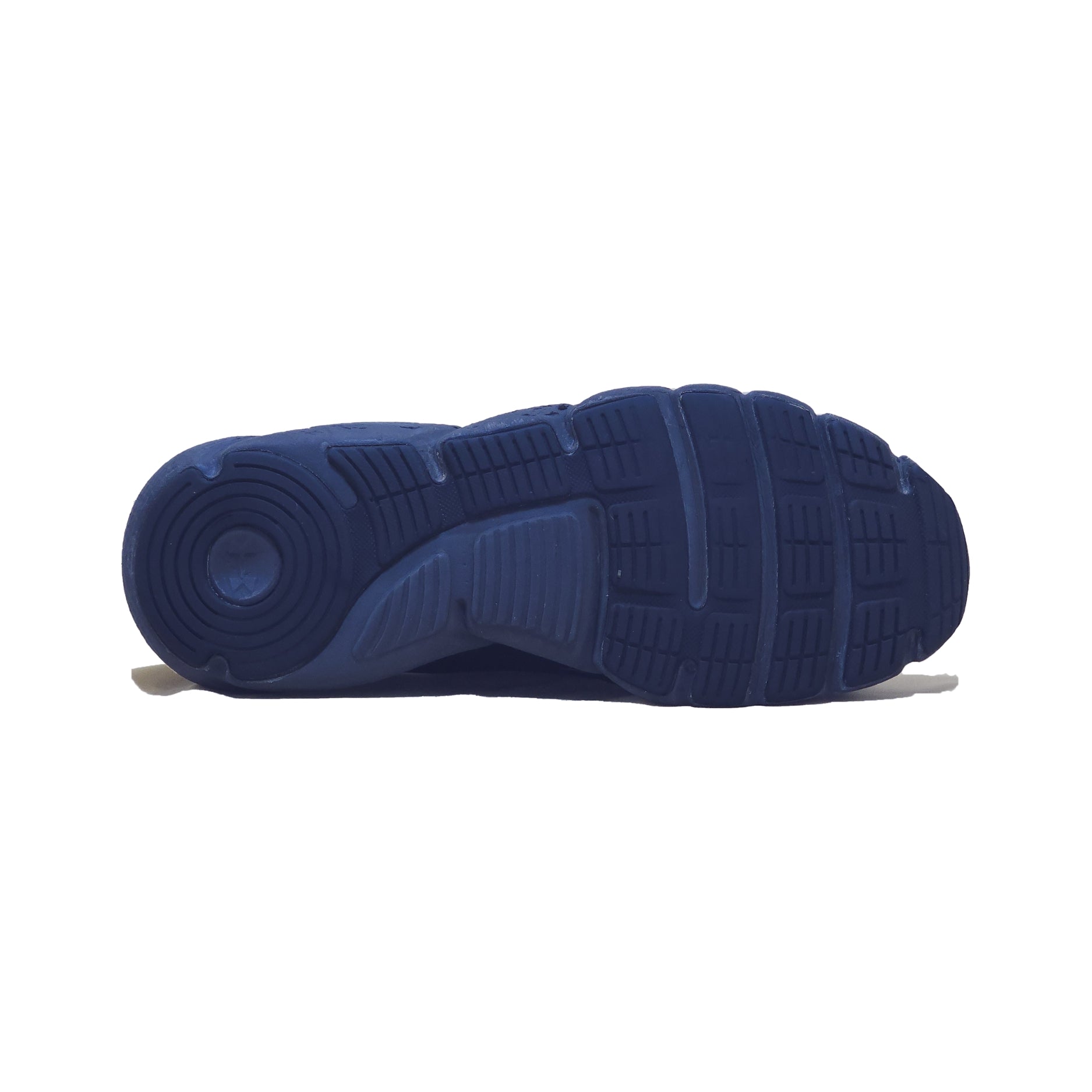 Solid rubber outsole for high-impact zones, heel pull tab